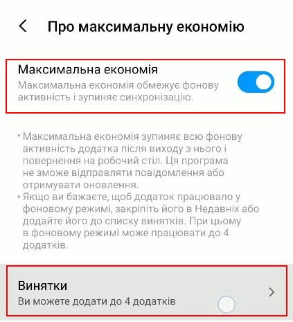 - Увімкнути “Максимальна економія”