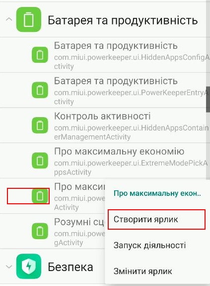 Можете створити ярлик на робочий стіл натиснувши та потримавши “Про максимальну економію”